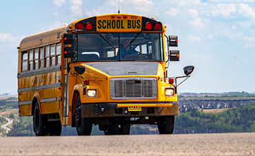 We have our own new school bus, which kids can use to get to school. It drives at 8 o’clock in the morning and at 5 o’clock in the evening.